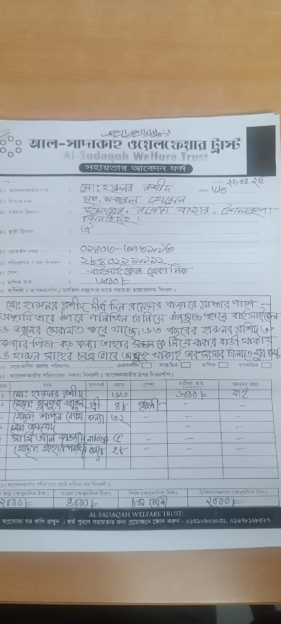 আমি দীর্ঘদিন ধরে রয়েড়া বাজারের পাশে অস্থায়ী ভাবে, উপরে পলিথিন টানিয়ে বাইসাইকেল ও ভ্যানগাড়ি মেরামত করে যাচ্ছি। আমি ৩ কন্যার পিতা,আমার বড় কন্যা তার সন্তানকে নিয়ে আমার বাড়িতে থাকায় ও আমার চরম ভাবে অসুস্থ থাকায় , সংসার চালাতে খুব কষ্ট হয়।
