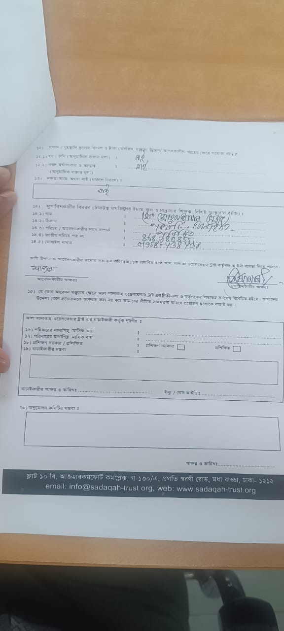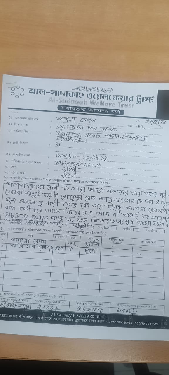 শাপলা বেগম এর স্বাবলম্বী আবেদন।