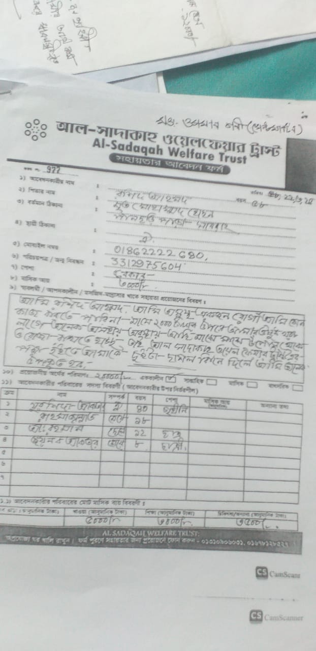 আমি রশিদ আহমদ। আমি অসুস্থ একজন রোগী। আমি কোনো কাজ করতে পারিনা , মাসে ঔষধ খরচ ২০০০ টাকা লাগে। অনেক অসহায় অবস্থায় আছি। মাঝে মাঝে না খেয়ে রোজা রাখতে হচ্ছে। তাই আল সাদাকাহ ওয়েল ফেয়ার ট্রাস্ট এর পক্ষ হইতে আমাকে ২টি ছাগল কিনে দিলে আমি অনেক উপকৃত হব।
